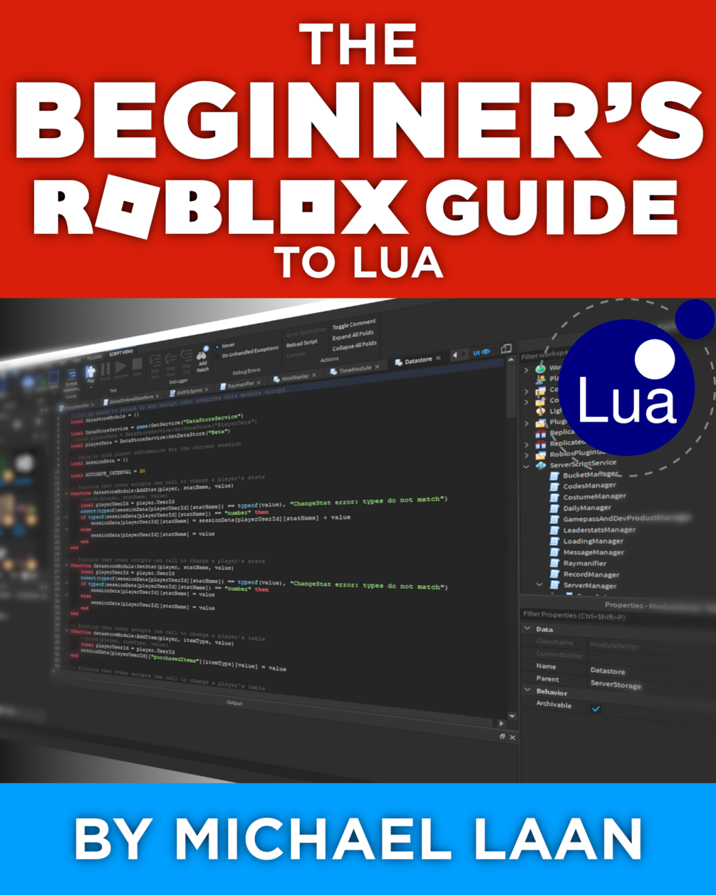 This guide is the answer to figuring out how to even start understanding Lua code. Throughout this book, there will be definitions and code blocks that work if you were to write and run it in a Roblox Studio script.